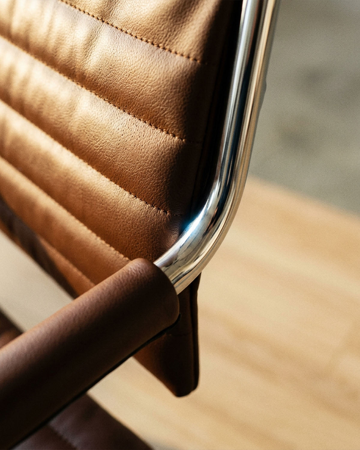 Chloe Tan - Brown hairdressing chair - Black round base